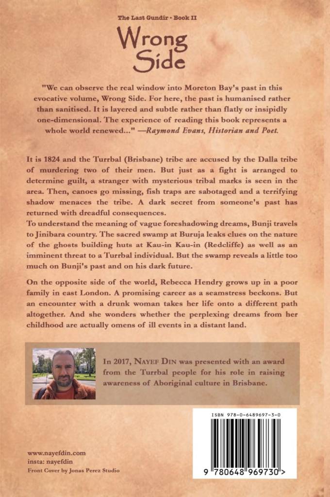 “The handful of historical chroniclers of 1820’s ‘Moreton Bay’ – of which I am one – remain painfully aware that the paltry handfuls of documents at their disposal from this era represent not so much a window onto the past as, more that likely, a wilful distortion of it. For these are all Occupier Documents: What they have to say about the First Nation true owners are invariably misreadings, composed either out of cultural ignorance or purposeful slander. The real windows into this past are actually the yawning gaps in the fabric of our understanding through which the finely tuned, reconstructive imagination is bold enough to pass. We can observe all that compellingly displayed in this evocative volume, Wrong Side. For here the past is humanised rather than sanitised. It is layered and subtle rather than flatly or insipidly one-dimensional. The experience of reading this book represents a whole world renewed, rather than yet another tired recycling of the dry residue of dubious documentary fragments.”
